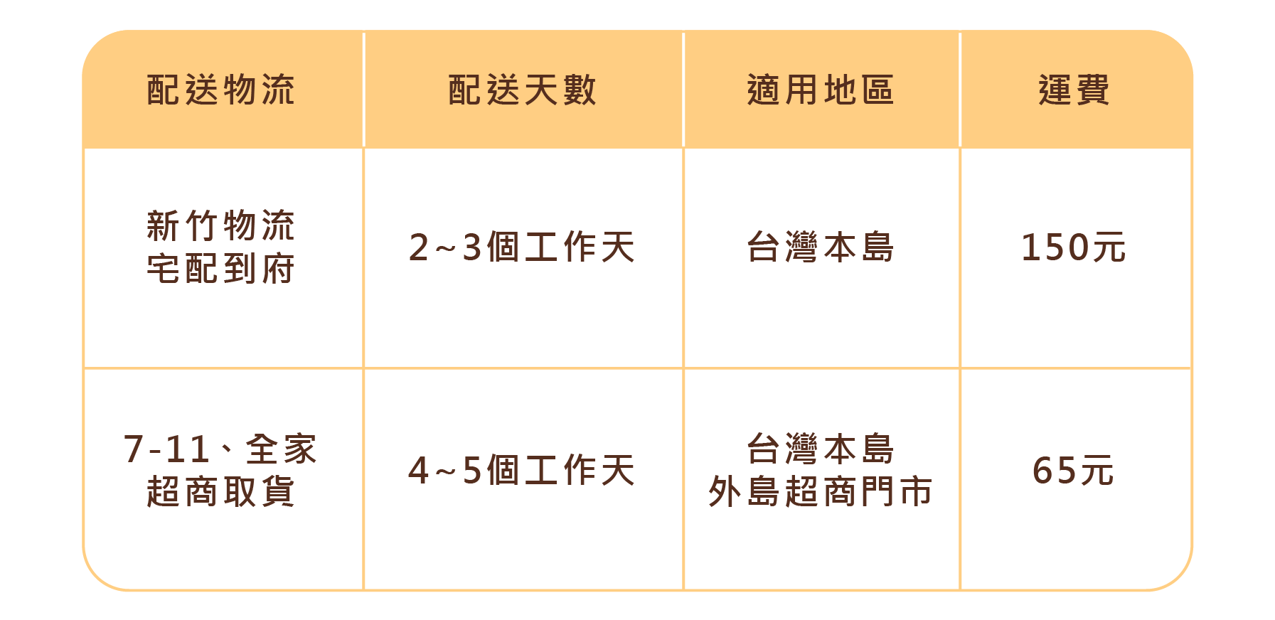 配送天數預估與運費請參考下圖: