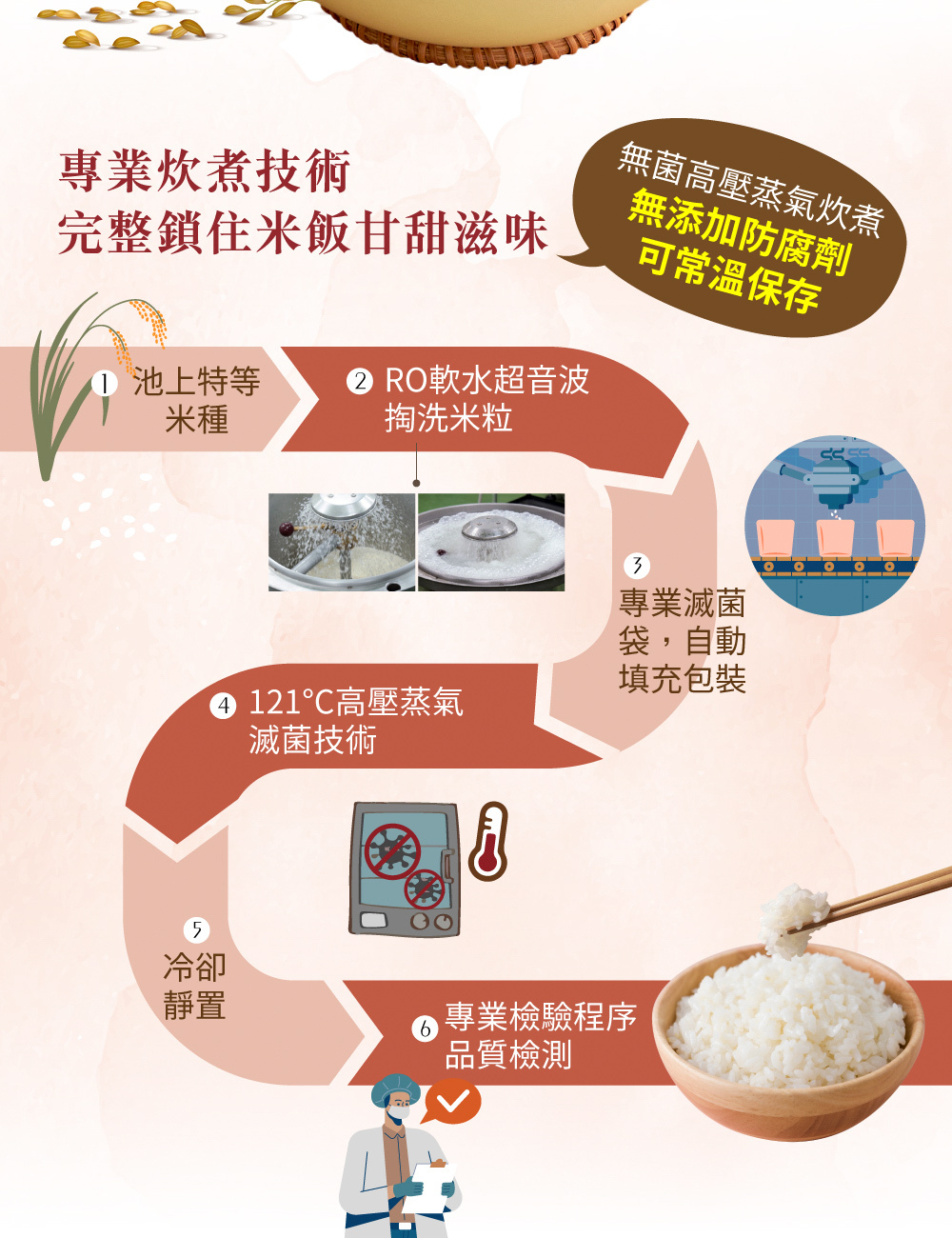 ★ 獨家高溫殺菌製程米飯,香Q彈牙