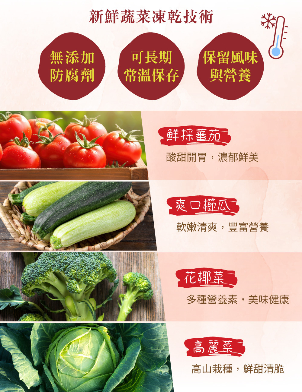 ★ 低溫凍乾新鮮蔬菜,保留完整營養
