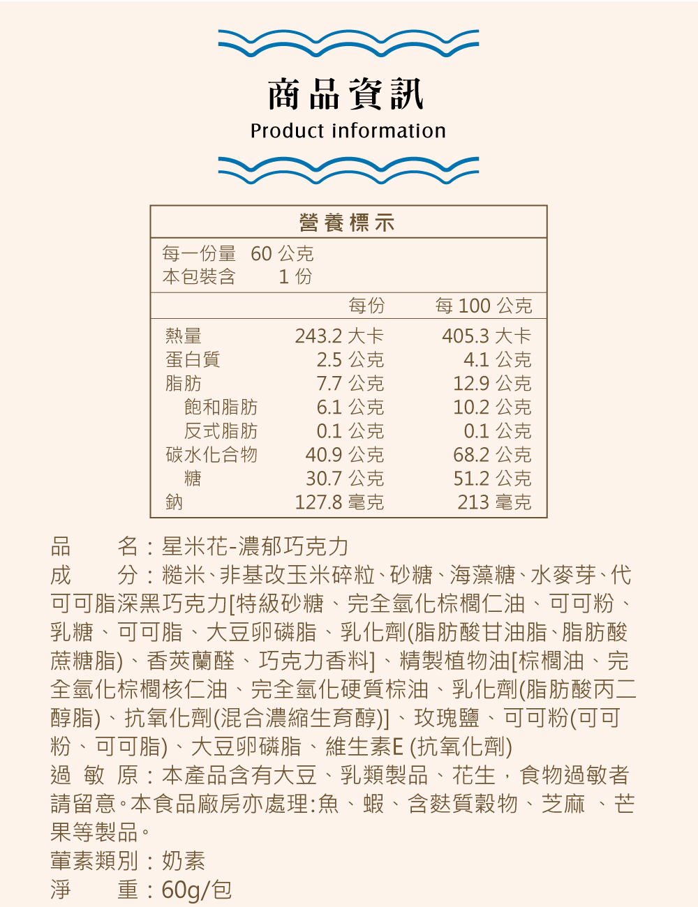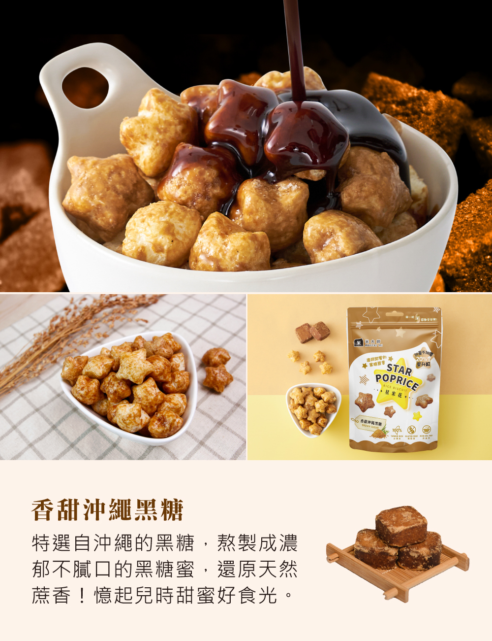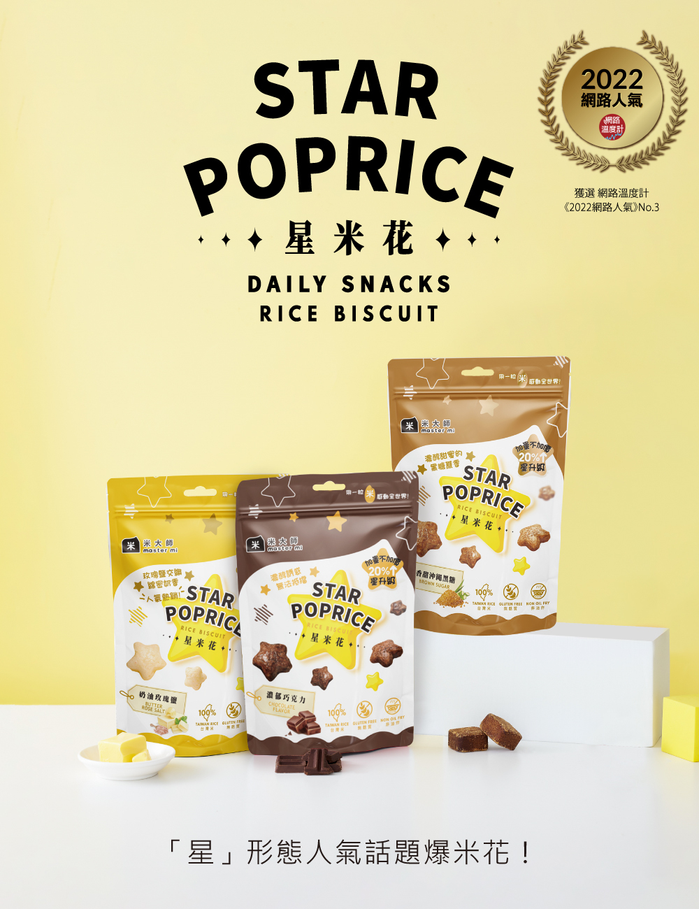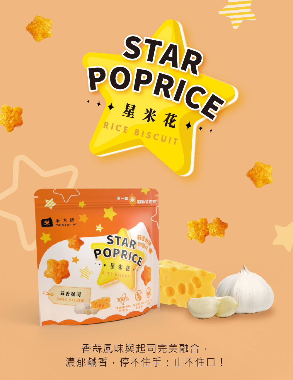 ★禮盒內容:星米花(濃郁巧克力X1、奶油玫瑰鹽X1、沖繩黑糖X1、蒜香起司X2、松露玉米濃湯X2),共7包