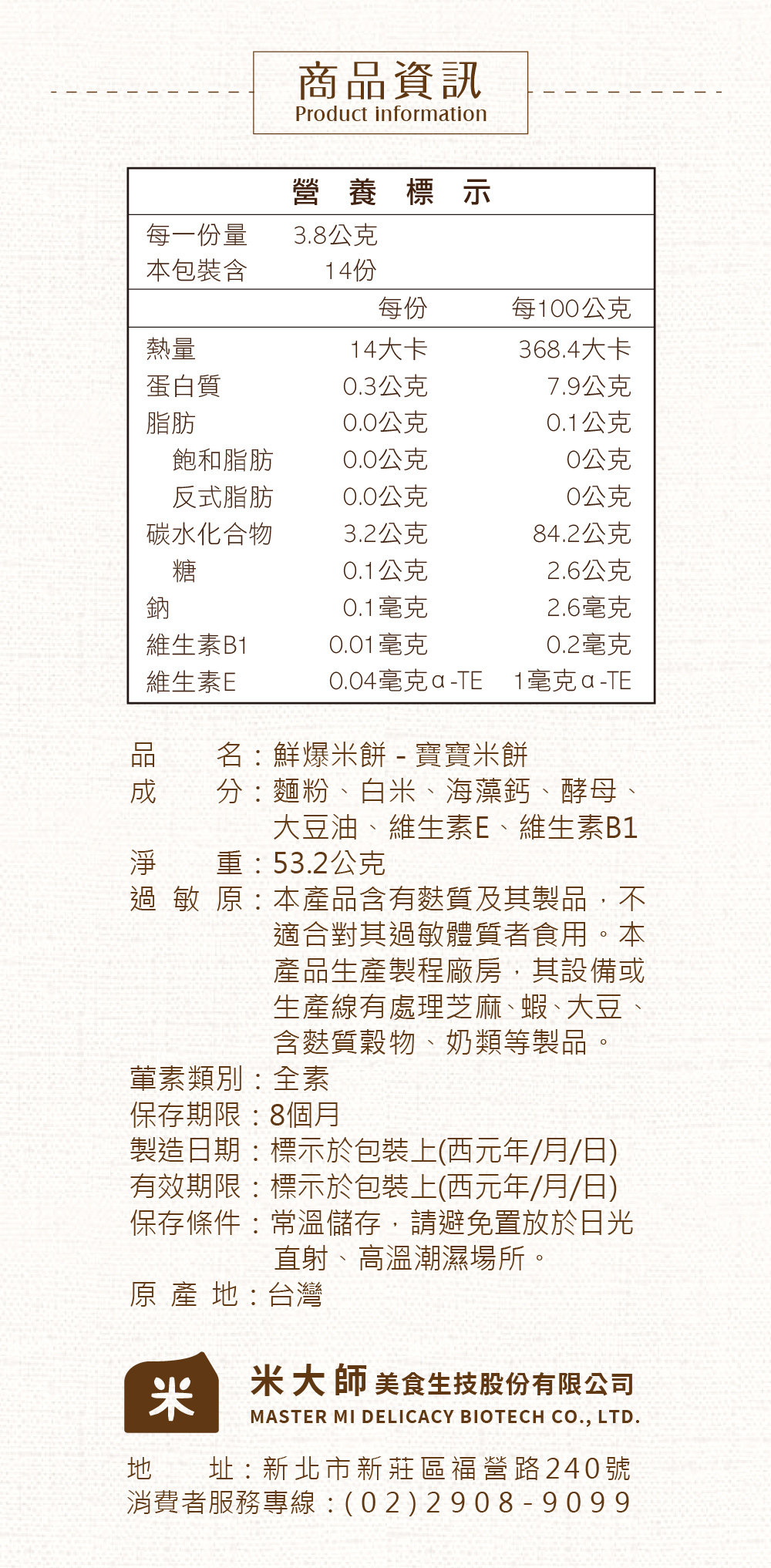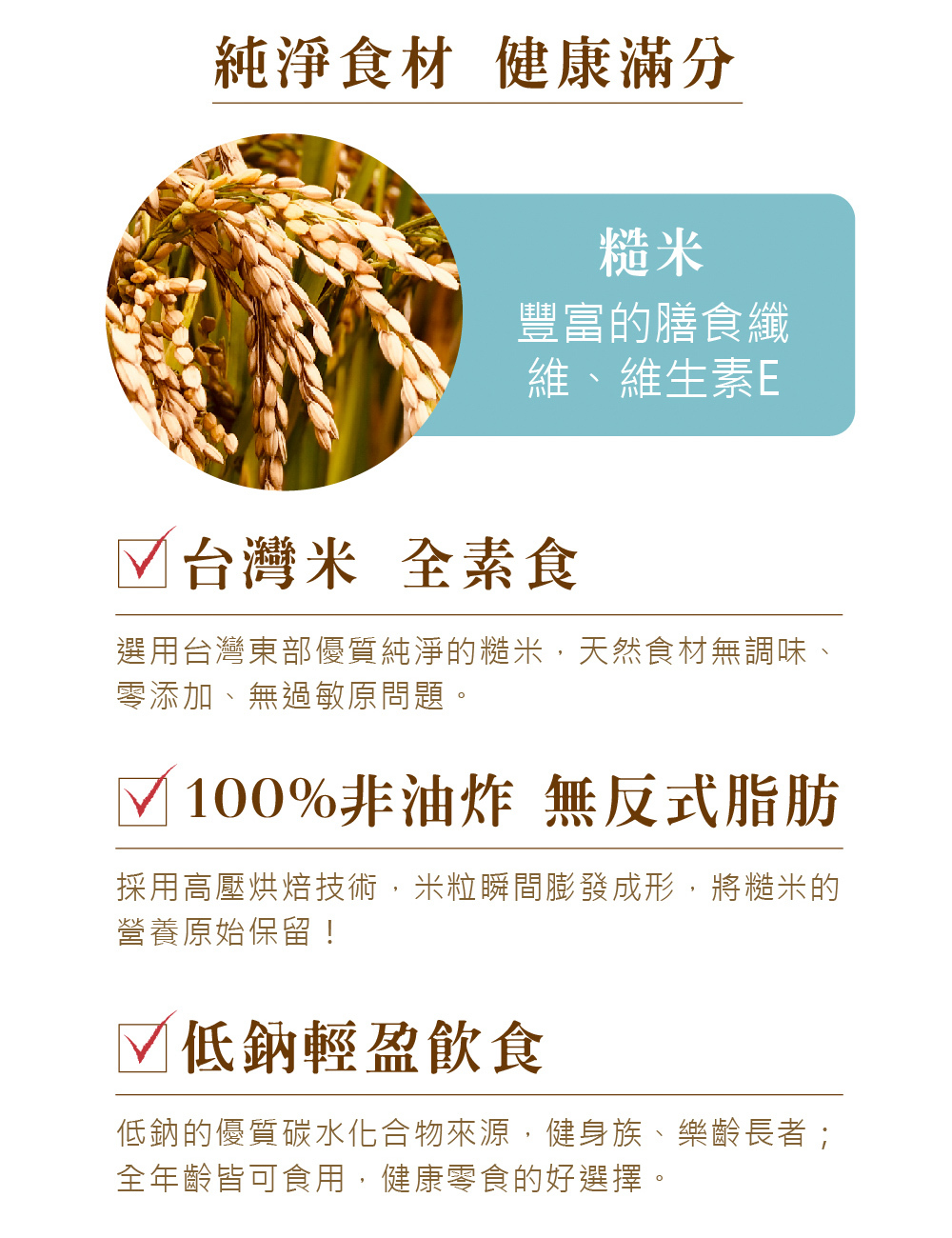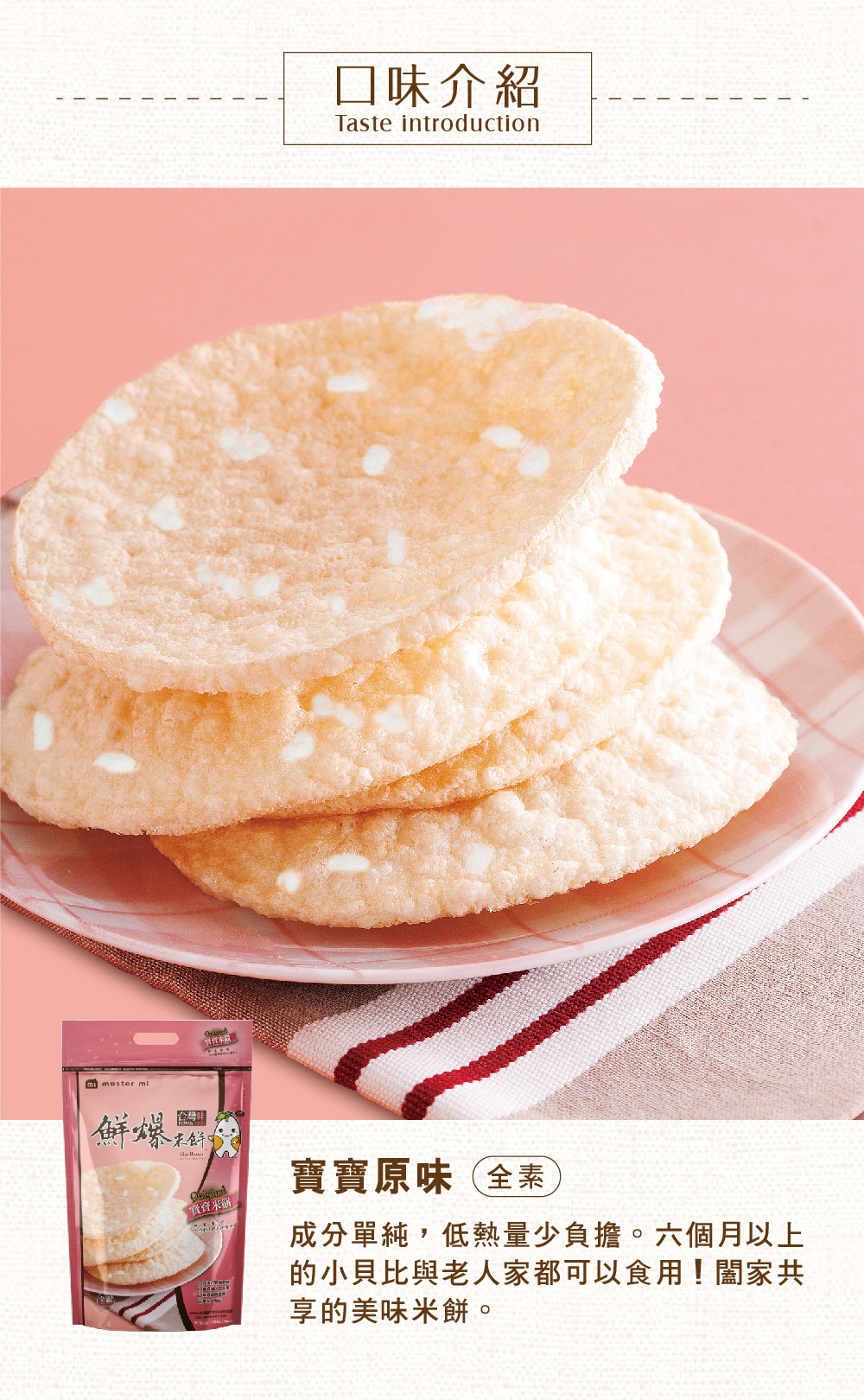 ★禮盒內容:鮮爆米餅-寶寶米餅(2包)+生機糙米餅-原味(1包)+生機糙米餅-黑麥玫瑰鹽(1包)+星米花-沖繩黑糖(1包),共5包