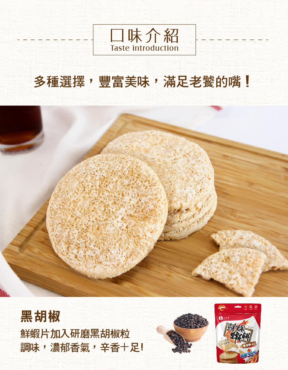 |禮盒內容:鮮爆蝦餅(原味X3、黑胡椒X2),共5包