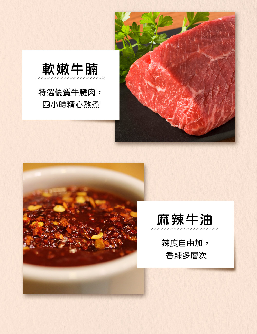 濃郁的日式咖哩與軟嫩牛腩,香濃醇厚,另附麻辣牛油,辣度自由配,口感層次更升級!