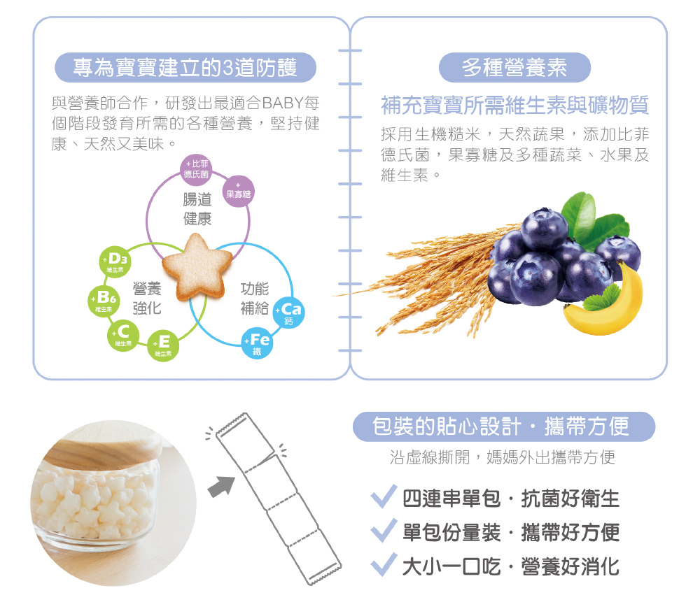 為寶寶提早建立營養強化、功能補給、腸道健康,三道健康防護。