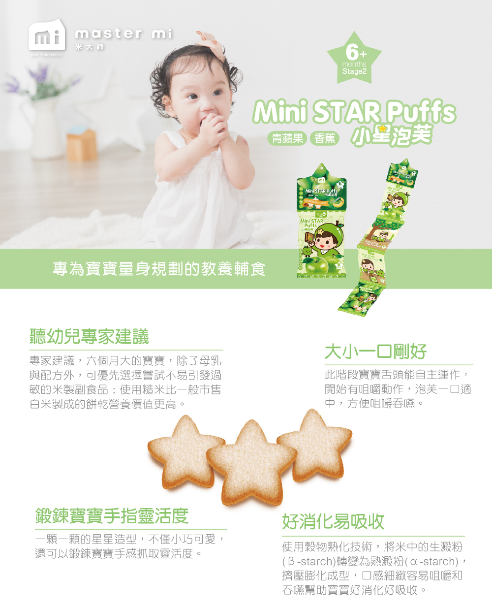 與營養師合作,研發出最適合baby每個階段發育,所需的各種營養,堅持健康、天然又美味。