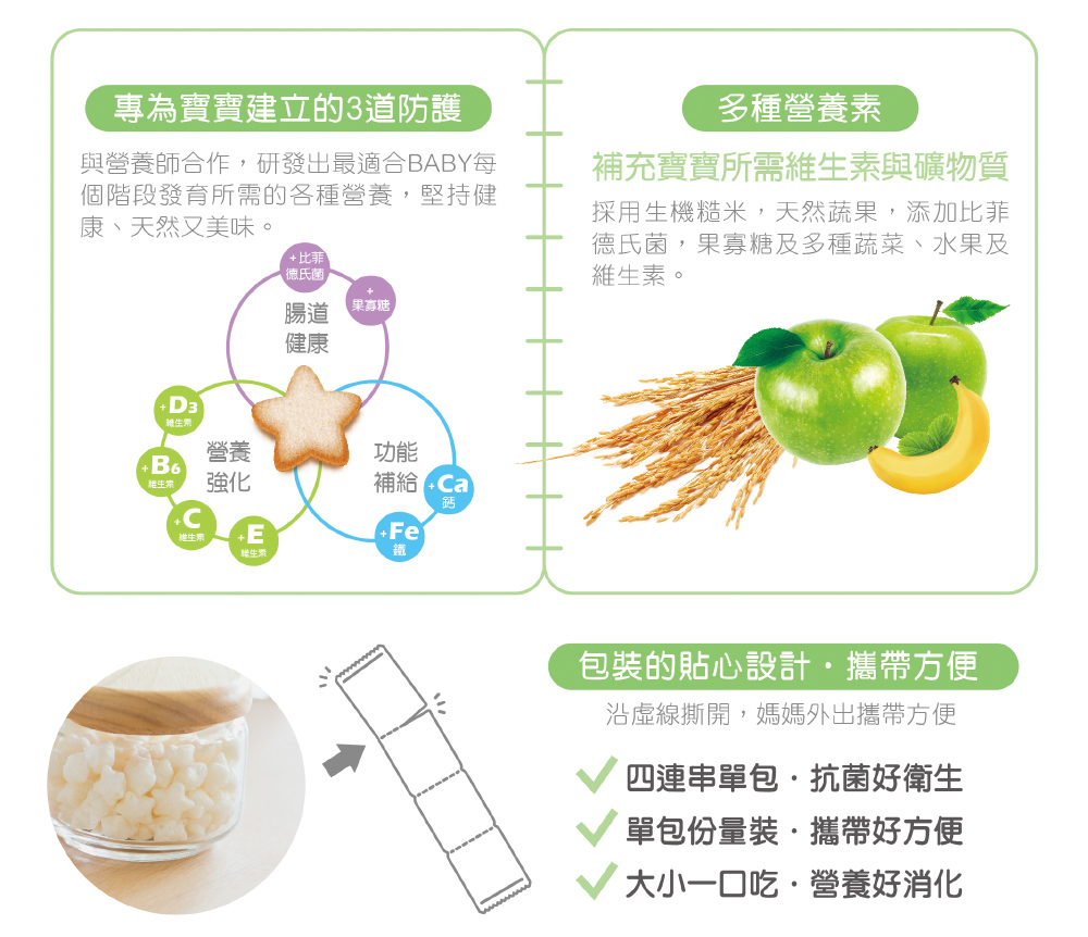 為寶寶提早建立營養強化、功能補給、腸道健康,三道健康防護。