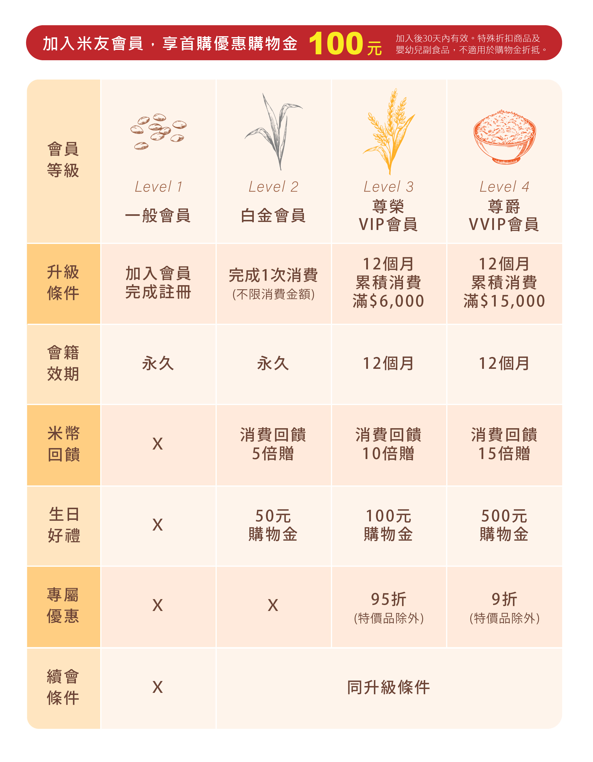 ※ 入會禮金、生日購物金皆不適用於嬰幼兒副食品系列商品。
