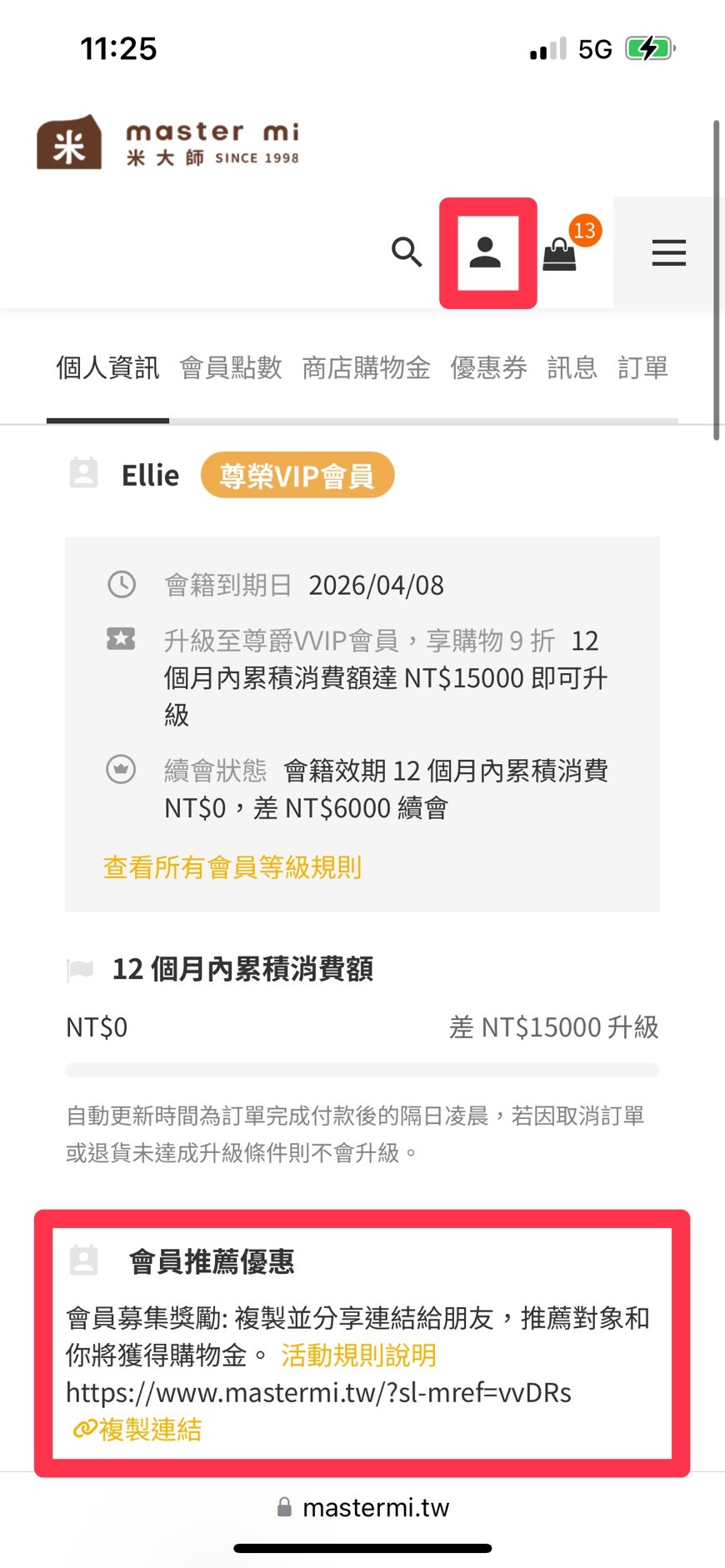 步驟一:需先登入會員,並進入「會員中心」>「個人資訊」,找到「會員推薦優惠」區塊,點擊「複製連結」,即可成功複製會員推薦連結。