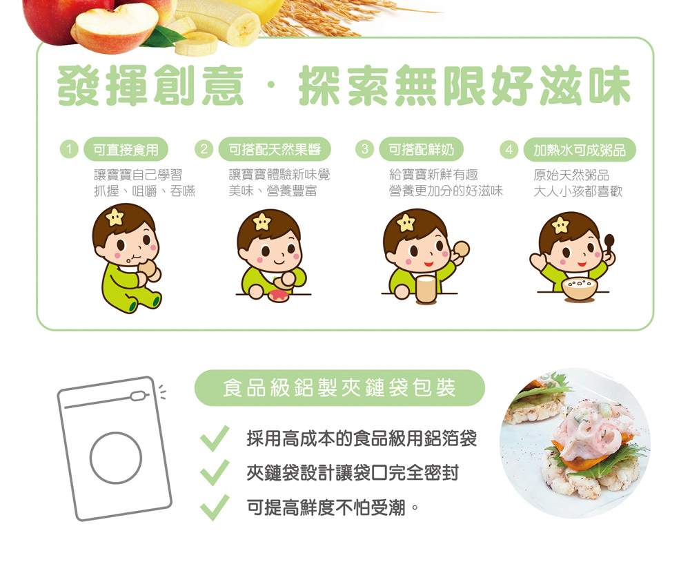 與營養師合作,研發出最適合baby每個階段發育學習,健康天然的美食。