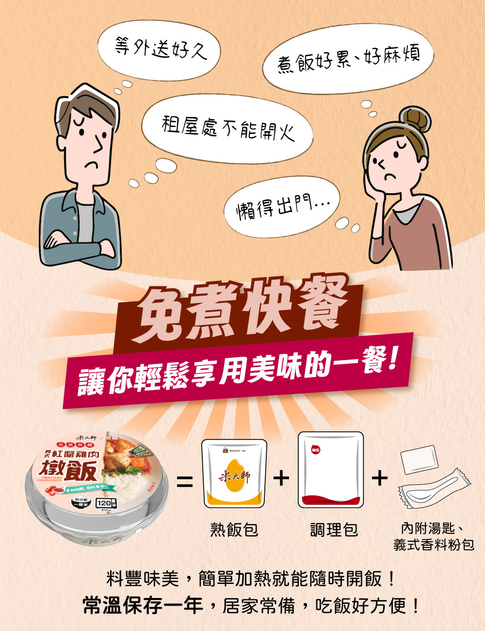 |常溫新鮮熟飯+調理包!食用輕鬆方便